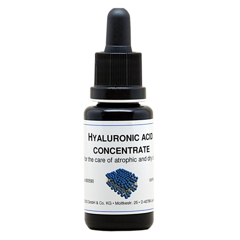 Eigenschappen: Hyaluronzuur is een effectieve moisturizer en anti-rimpel middel. In sterk gedoseerde liposomale dispersie wordt de effectiviteit op volwassen, oudere en atrofische huid naar een hoger niveau getild. Vooral in de winter, bij lage luchtvochtigheid, heeft de combinatie van het hoogmoleculaire polysaccharide en de natuurlijke drager van essentiële vetzuren zich bewezen als state of the art voor de oogverzorging. De dosering van het hyaluronzuur is 2,5 keer die van het niet-liposomale “Hyaluronic Acid Concentrate”.
